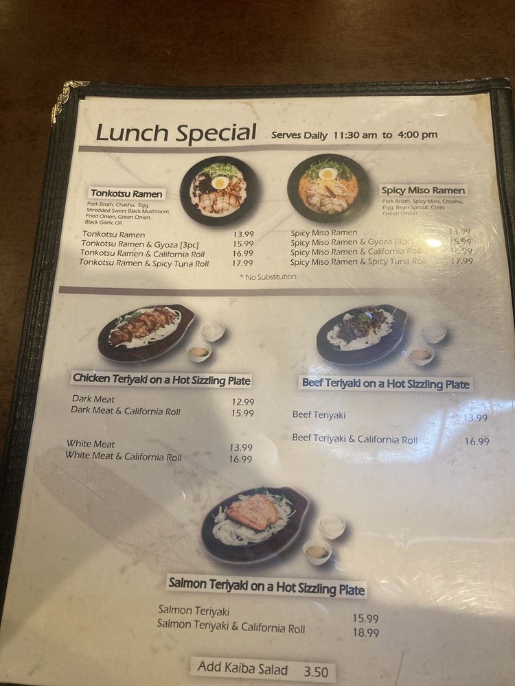 Introducing the menu at Kaiba Japanese Ramen, Sushi & Grill - Pasadena, a casual yet trendy spot offering an array of Japanese delicacies. The menu boasts a variety of appetizers, from Krab Salad to Soft Shell Crab, catering to different tastes. Their Carpaccio selection includes Tuna, Salmon, Yellowtail, and Albacore options for raw fish enthusiasts. Customers rave about the spicy Edamame and the crispy rice with spicy tuna. Reviews applaud the generous portions, delicious flavors, and attentive service. The ambiance is noted as chill and welcoming. With options for both sushi lovers and those craving a heartier meal, Kaiba Japanese Ramen, Sushi & Grill - Pasadena promises a satisfying dining experience.